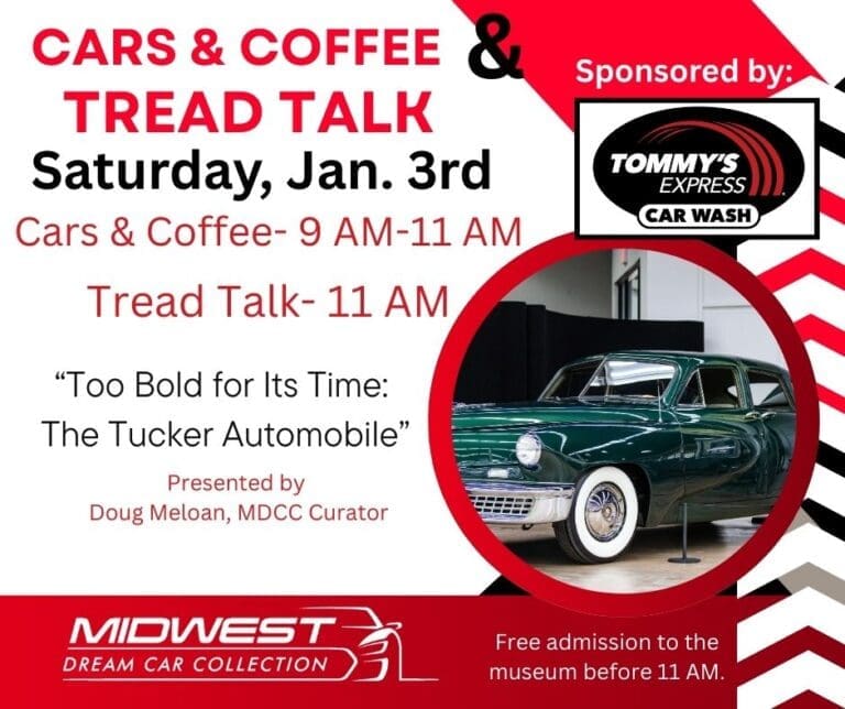 Join us this January for our Tread Talk exploring the fascinating history of the Tucker—one of the most innovative and controversial cars ever built. Led by our curator, Doug Meloan, this engaging talk will dive into Preston Tucker’s bold vision, the groundbreaking design of the Tucker 48, and the legacy that still captures imaginations today. Whether you’re a car enthusiast or history buff, this is a story of innovation, risk, and automotive legend you won’t want to miss.