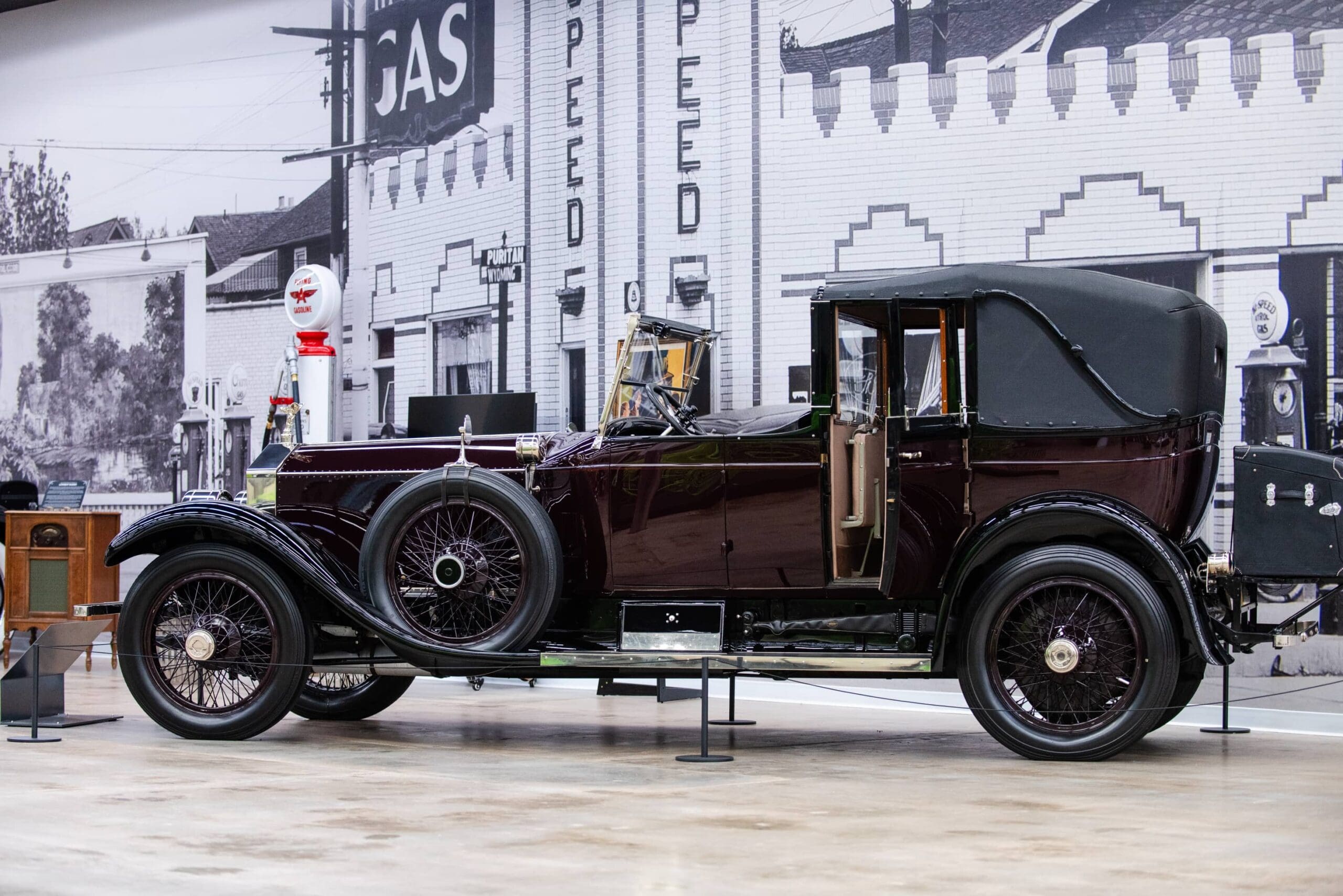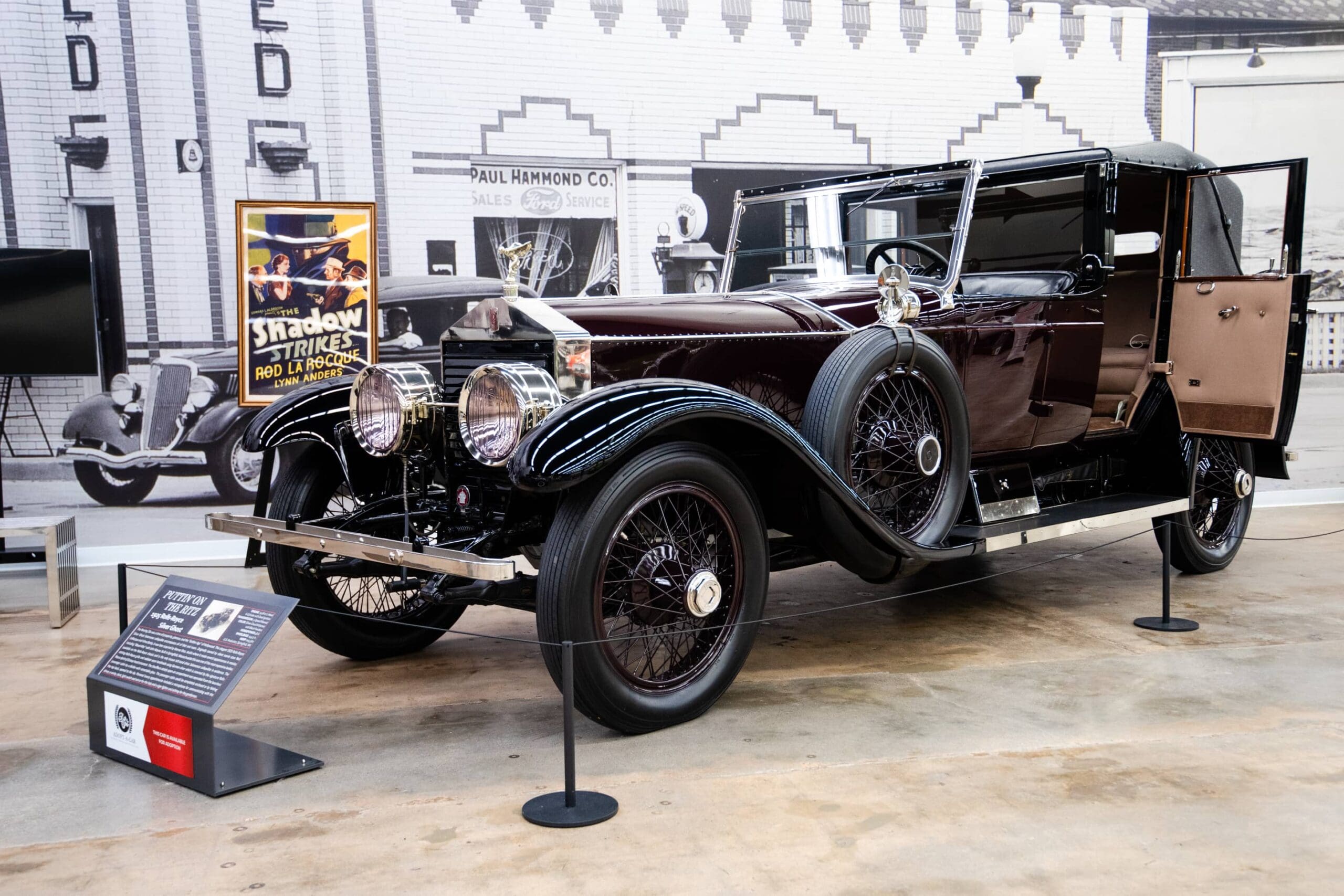 This Rolls-Royce Silver Ghost was originally owned by silent movie stars Rod LaRocque and Vilma Banky. It was later acquired by Warner Bros. studio where it made several appearances in movies including “Blood Alley” with John Wayne and “By the Light of the Silvery Moon” with Doris Day in the early 1950s. This Springfield Rolls-Royce benefited from the creativity of US coachbuilder Willoughby. Elegant, yet pricey at $15,560, this Rolls-Royce Silver Ghost Salamanca collapsible was one of the most expensive bodies available on the Rolls-Royce chassis and is the only known left-hand drive Salamanca collapsible in existence. Finished in deep Silver Cloud Garnet with black fenders it makes a stately presence upon its arrival.