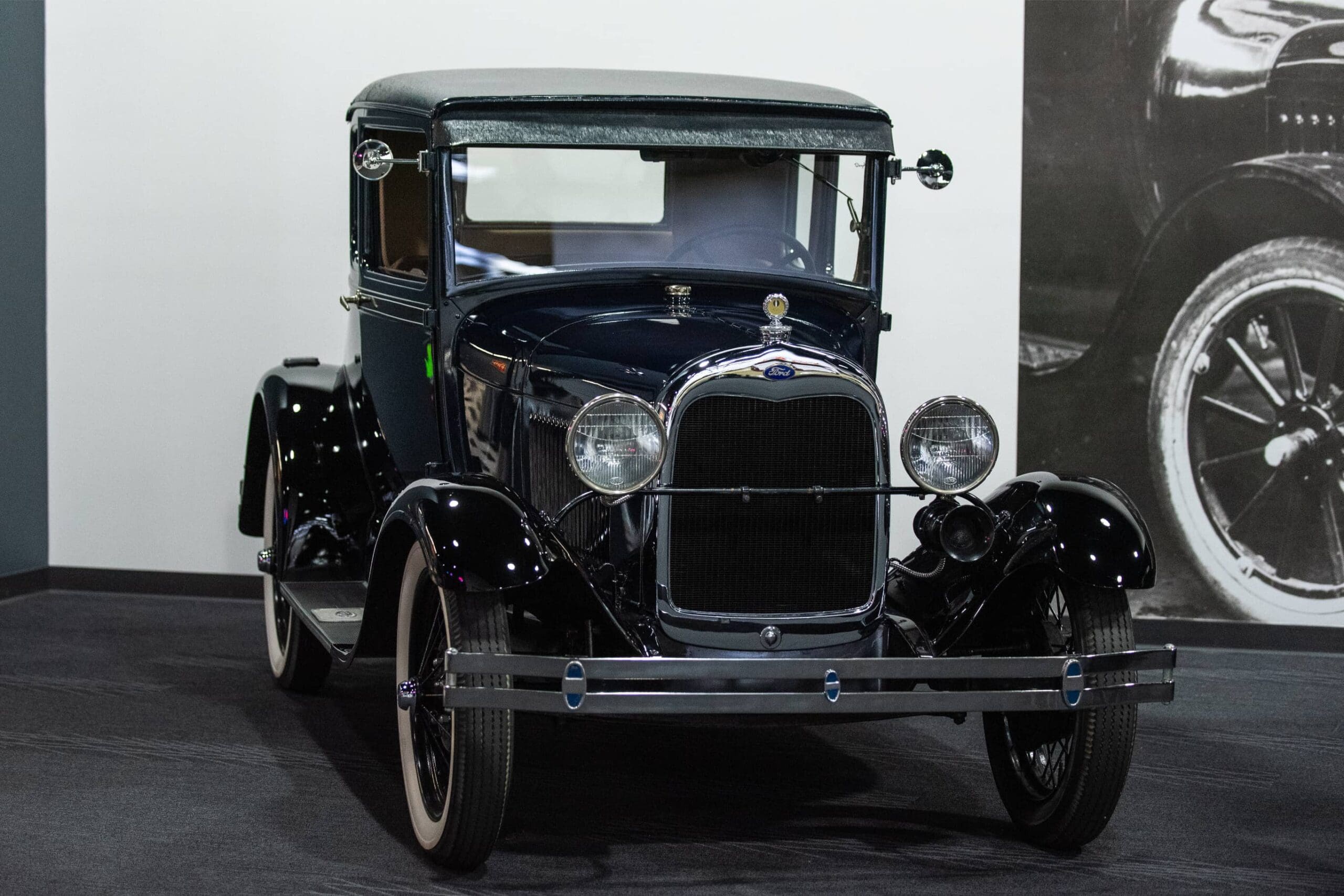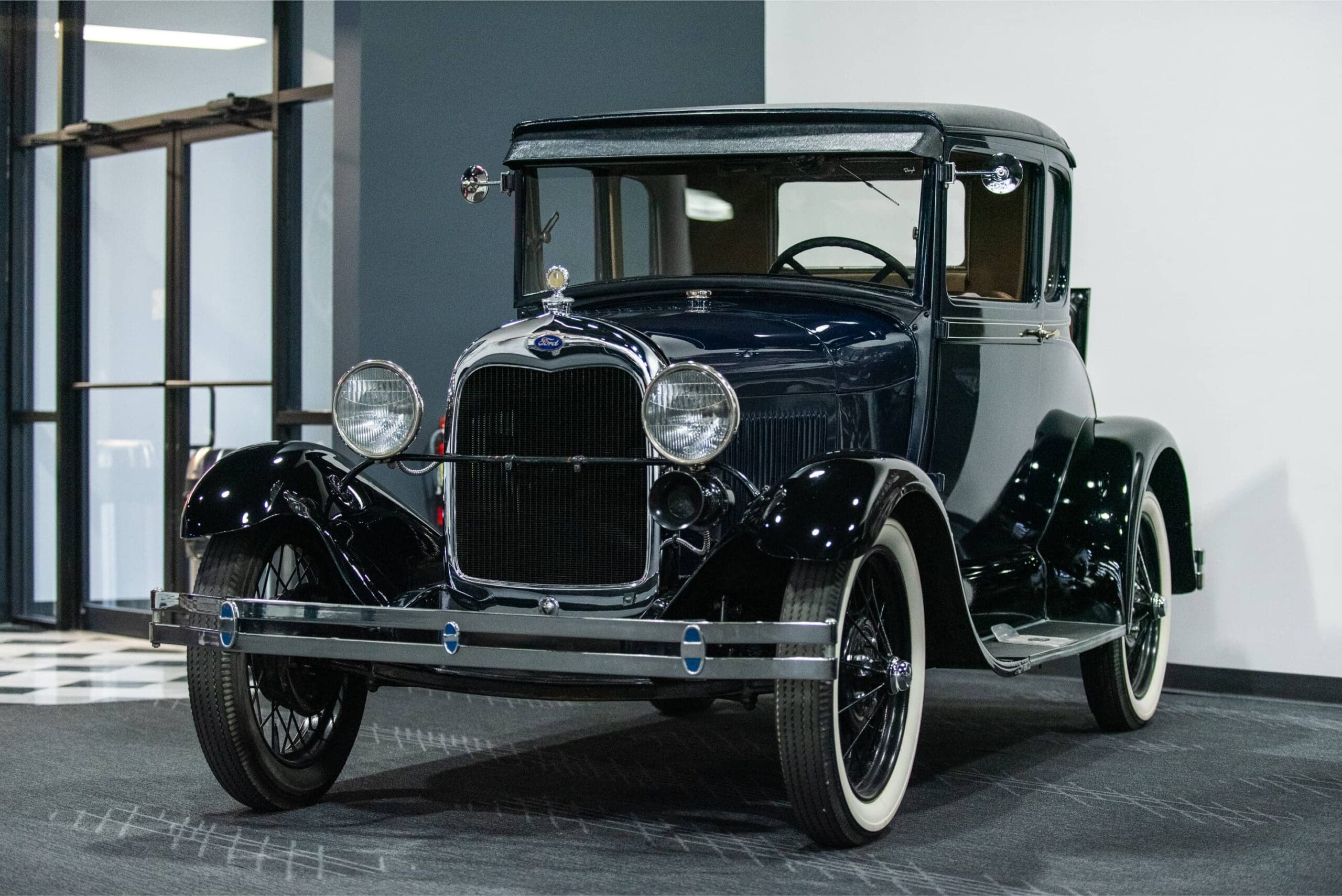 The Model A was sold in a number of body styles, including the coupe, business coupe, roadster coupe, sport coupe, convertible cabriolet, convertible sedan, phaeton, tudor sedan, and town car. This particular Model A features a standard coupe body style with a rumble seat at the rear, a $50 option from the factory.
