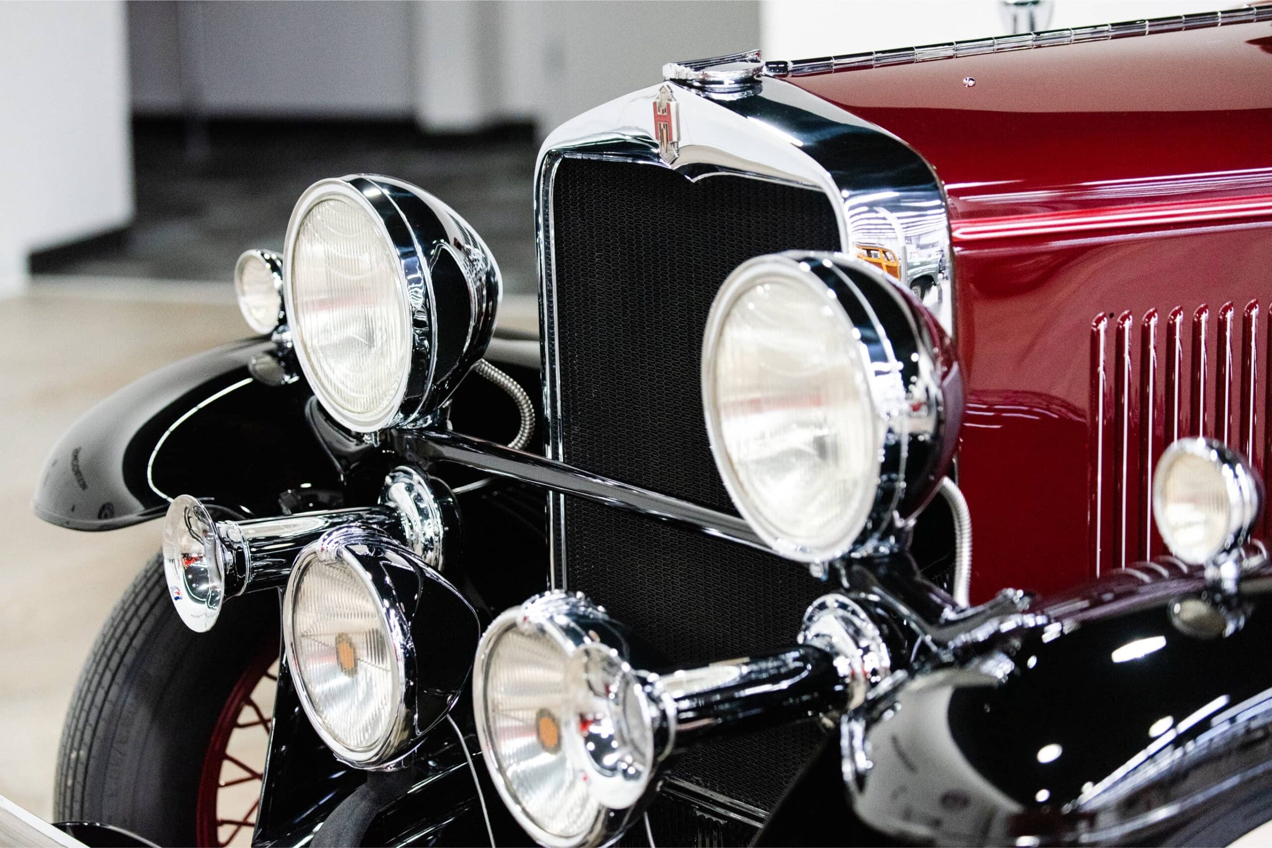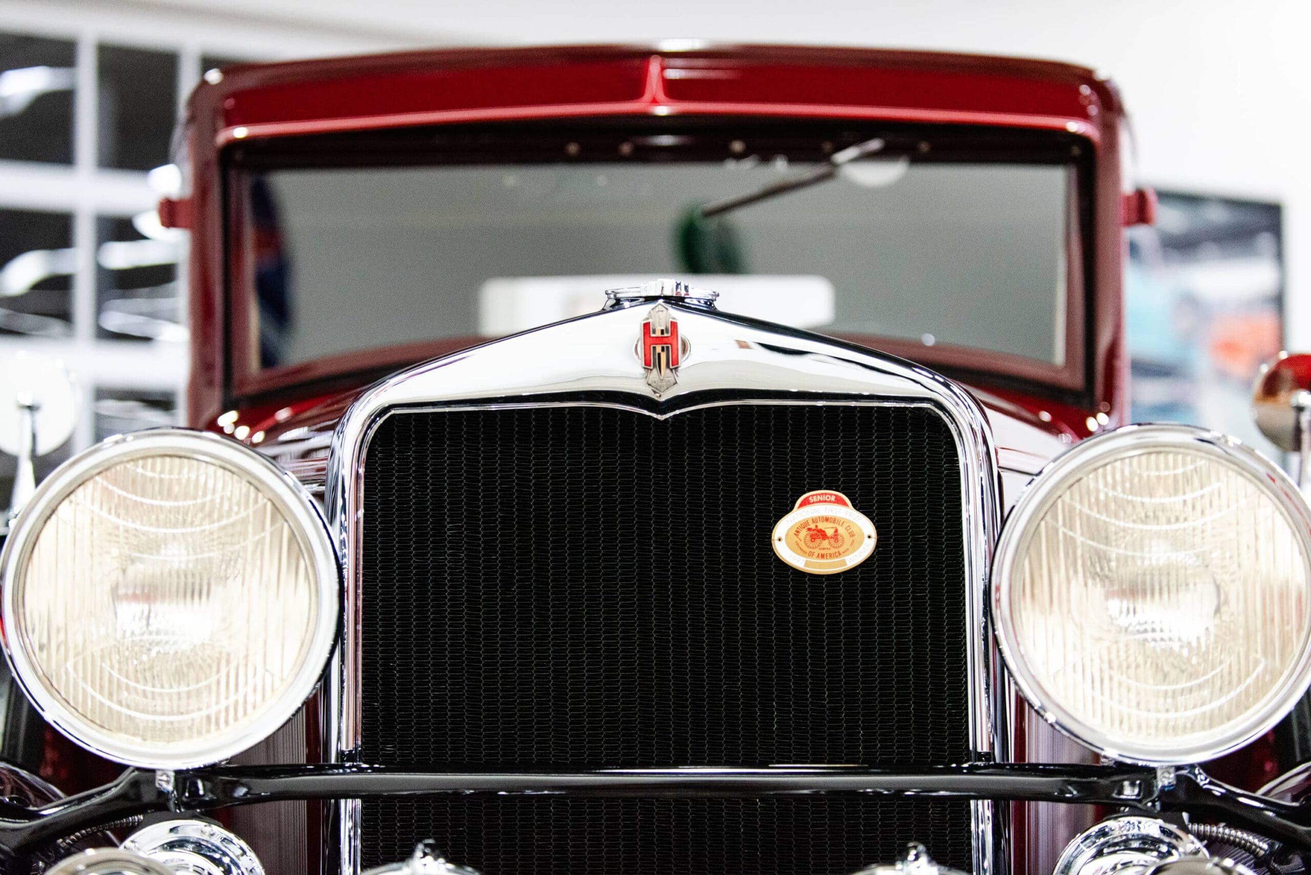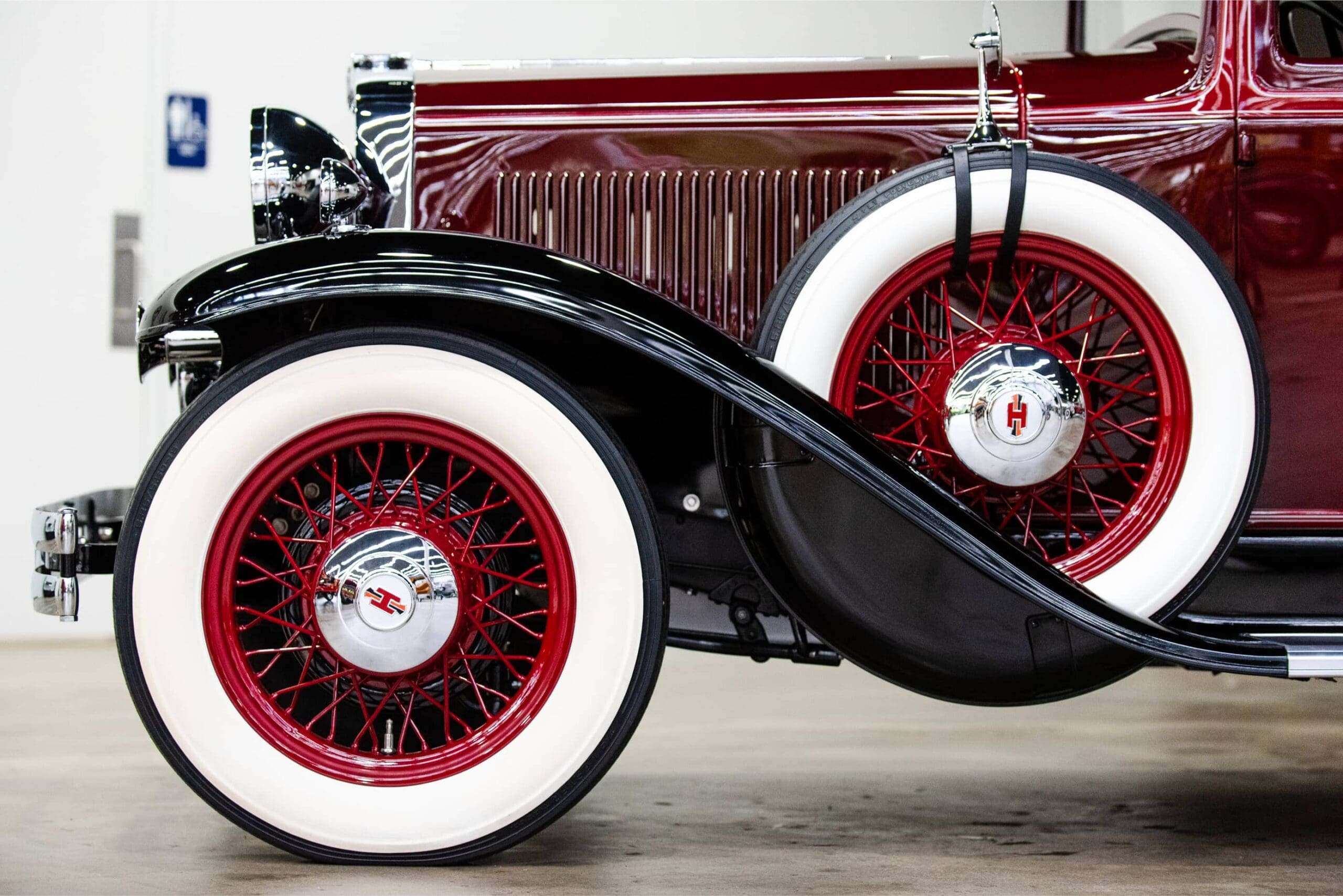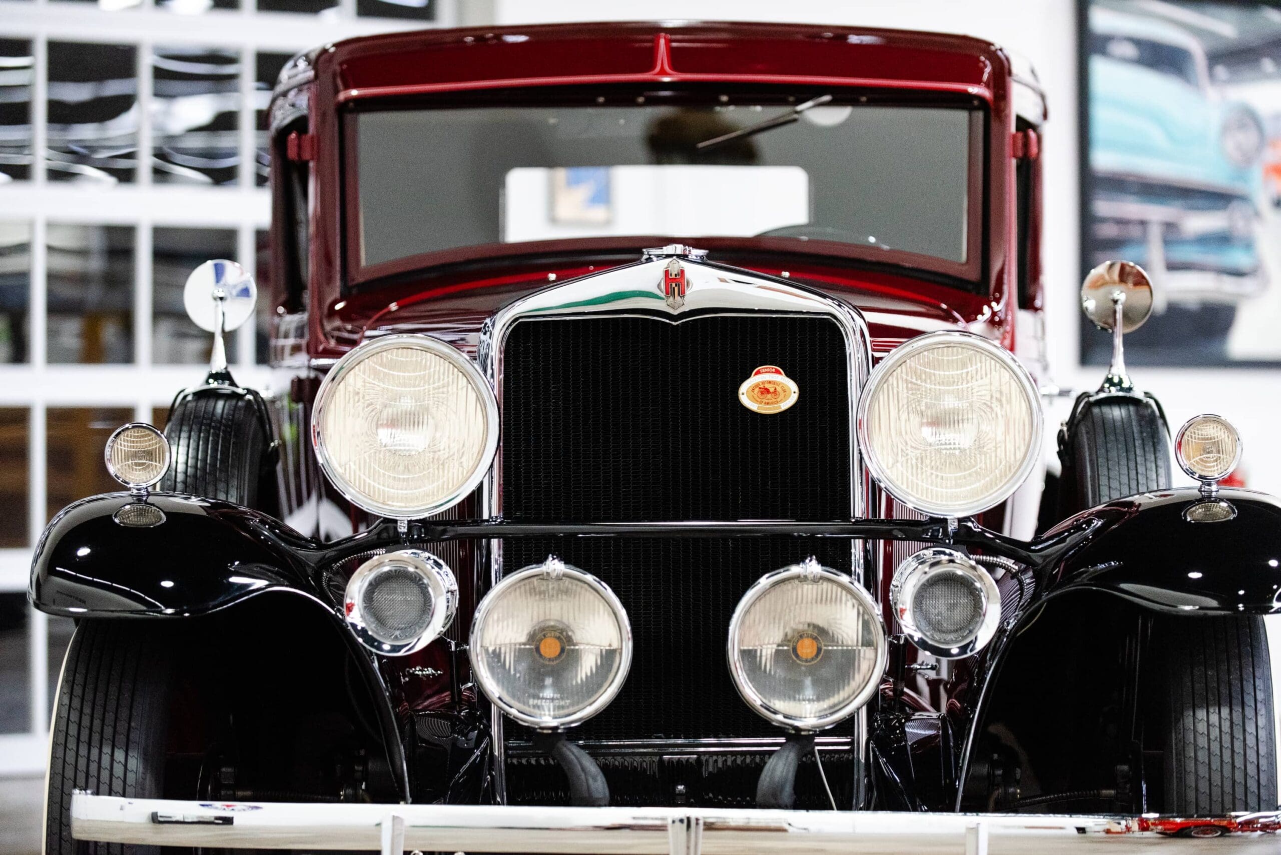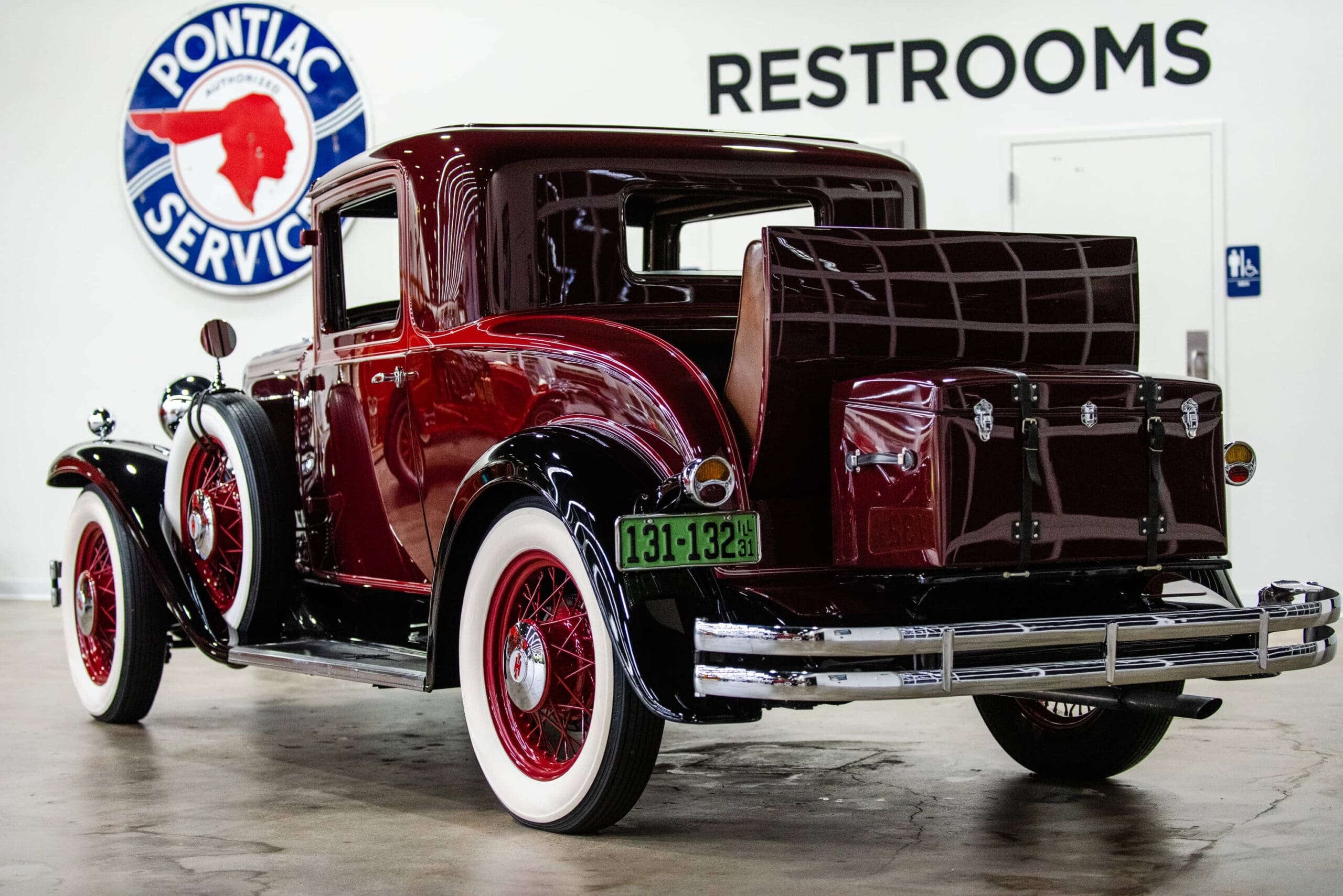 The Midwest Dream Car Collection is proud to display this beautiful 1931 Hupmobile Century Six Series S two-door coupe. It is equipped with the factory correct 211.6 CID 6-cylinder engine paired to a 3-speed manual transmission. The car is finished in a rich two-tone deep burgundy color with black fenders. The accessory dual driving lights are centered between twin horns, all beautifully finished in highly polished chrome. Four wide whitewall tires are mounted to the burgundy wire spoked wheels along with two additional side mounted matching spare tires and wire wheels. Two matching chrome side rear view mirrors are mounted to the spare tires with leather straps. A matching burgundy painted trunk is mounted in the rear. This national award-winning car was beautifully restored and maintained by its former longtime owner, Richard Peters, of Trilla, IL. The Midwest Dream Car Collection acquired the car in August of 2021.