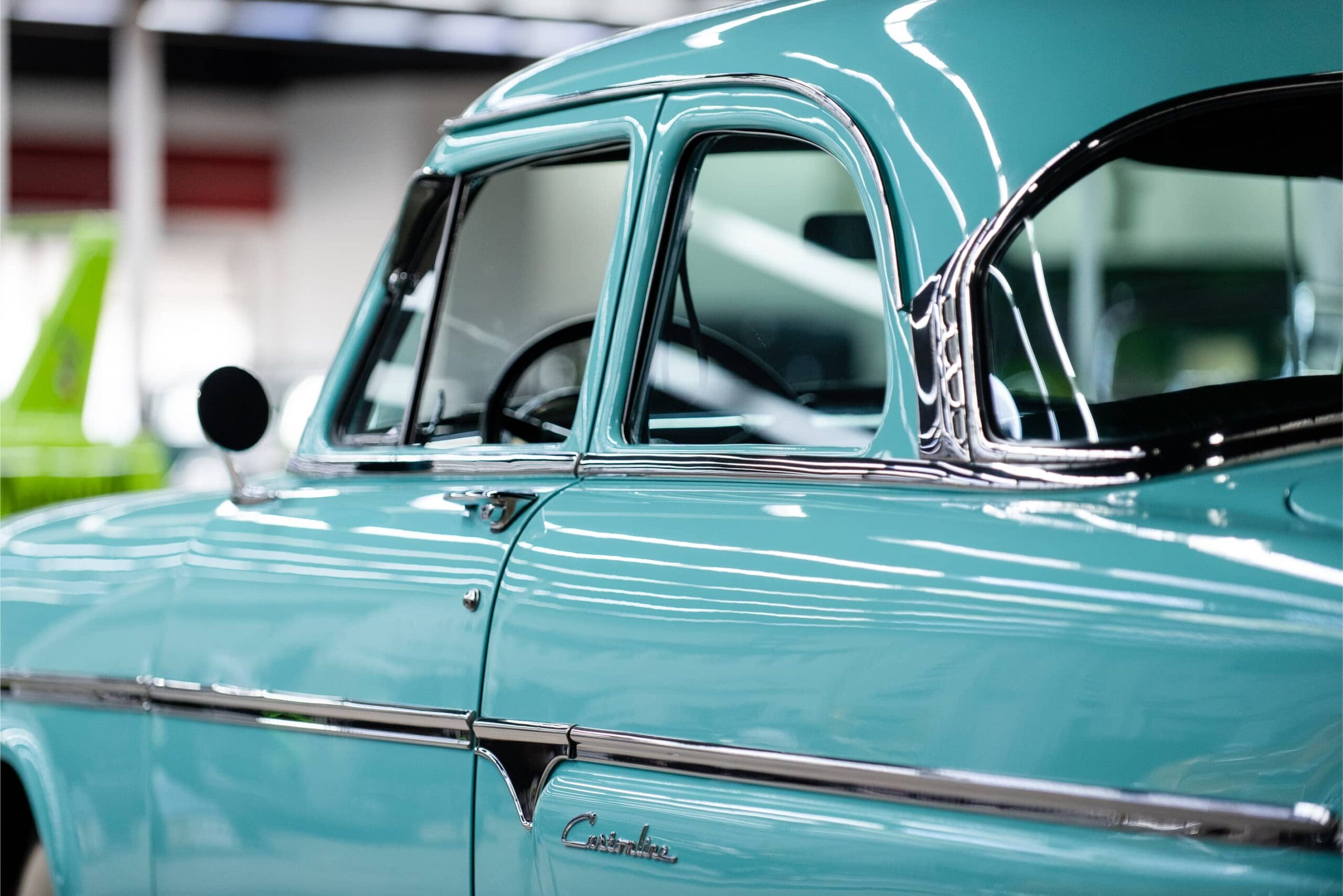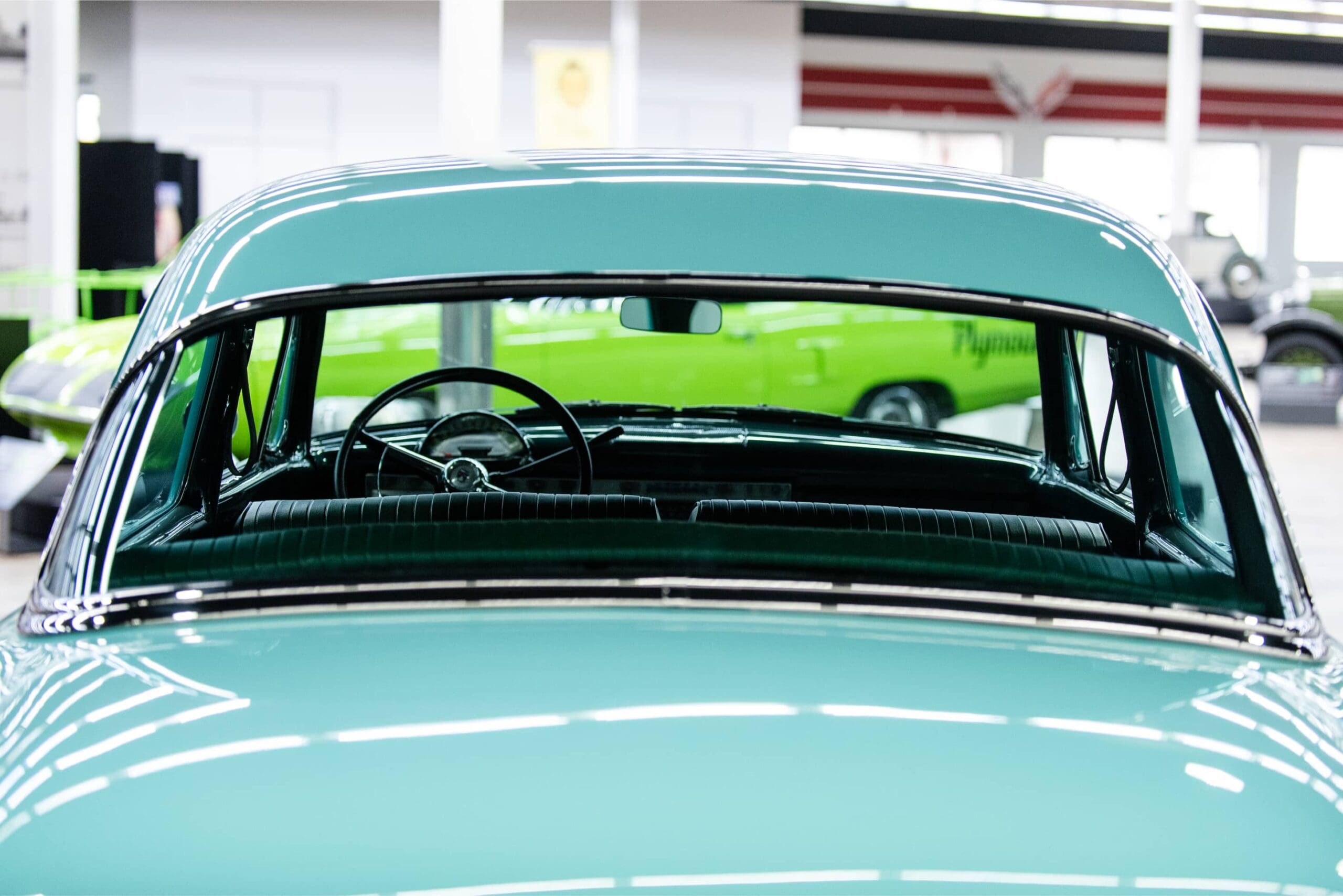 The car was completely rebuilt in 2013. The engine and transmission themselves were rebuilt, along with new brake and exhaust systems. Additionally, the car was repainted in the original sky-haze green, complemented by a new interior headliner, seat covers, and carpets. The door panels are original. New original-style cloth-covered wiring was used throughout, and many parts were re-chromed, along with numerous other finishing touches. Many parts were powder-coated, and everything was either rebuilt or replaced with new parts.