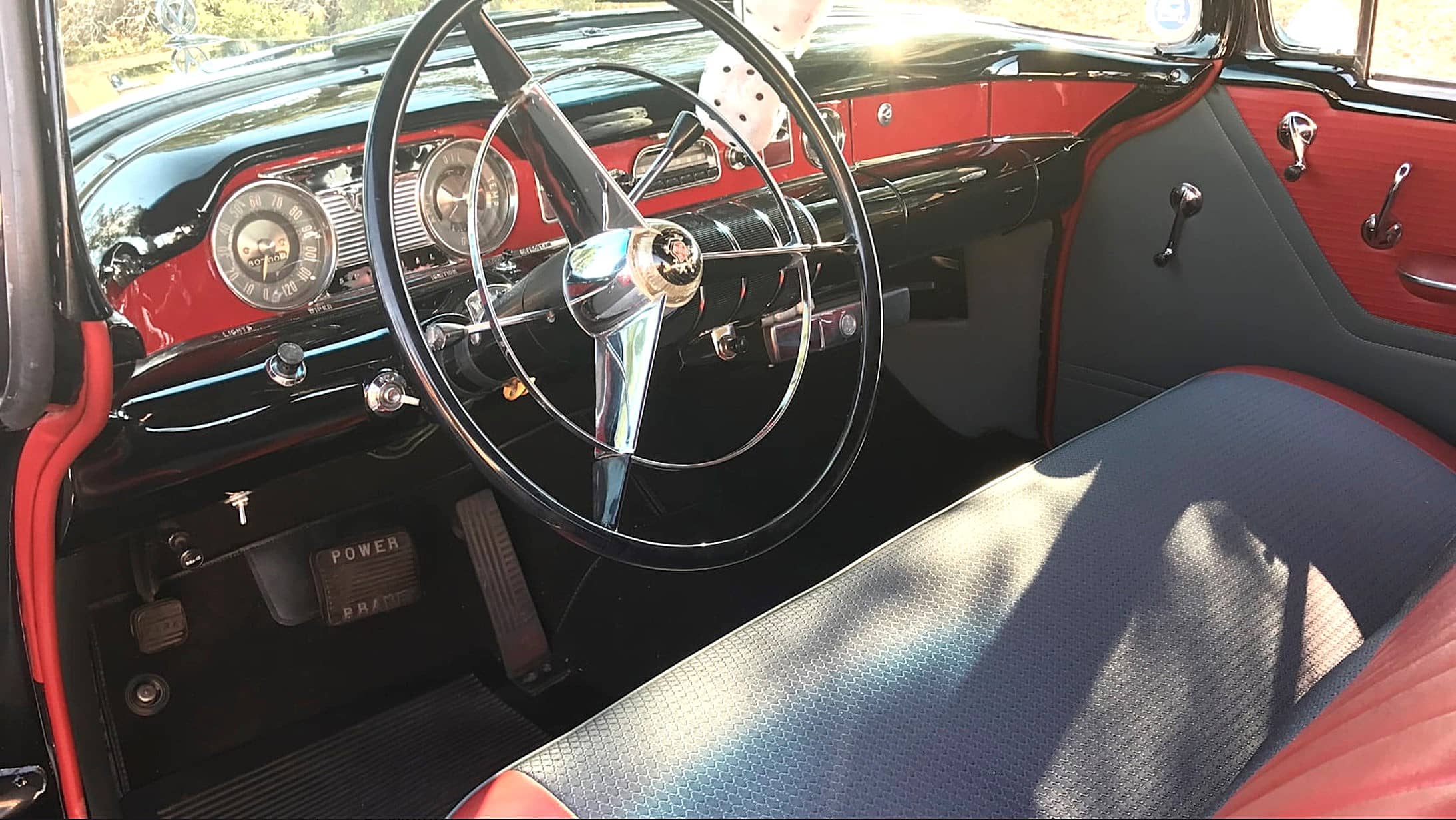 The engine is a 264-CID “Nailhead” V-8 with 188 horsepower and a Dynaflow automatic transmission. As the smallest-displacement Nailhead, it’s a small-bore version of the 322, sharing stroke and deck height but having its own 3.625” bore.