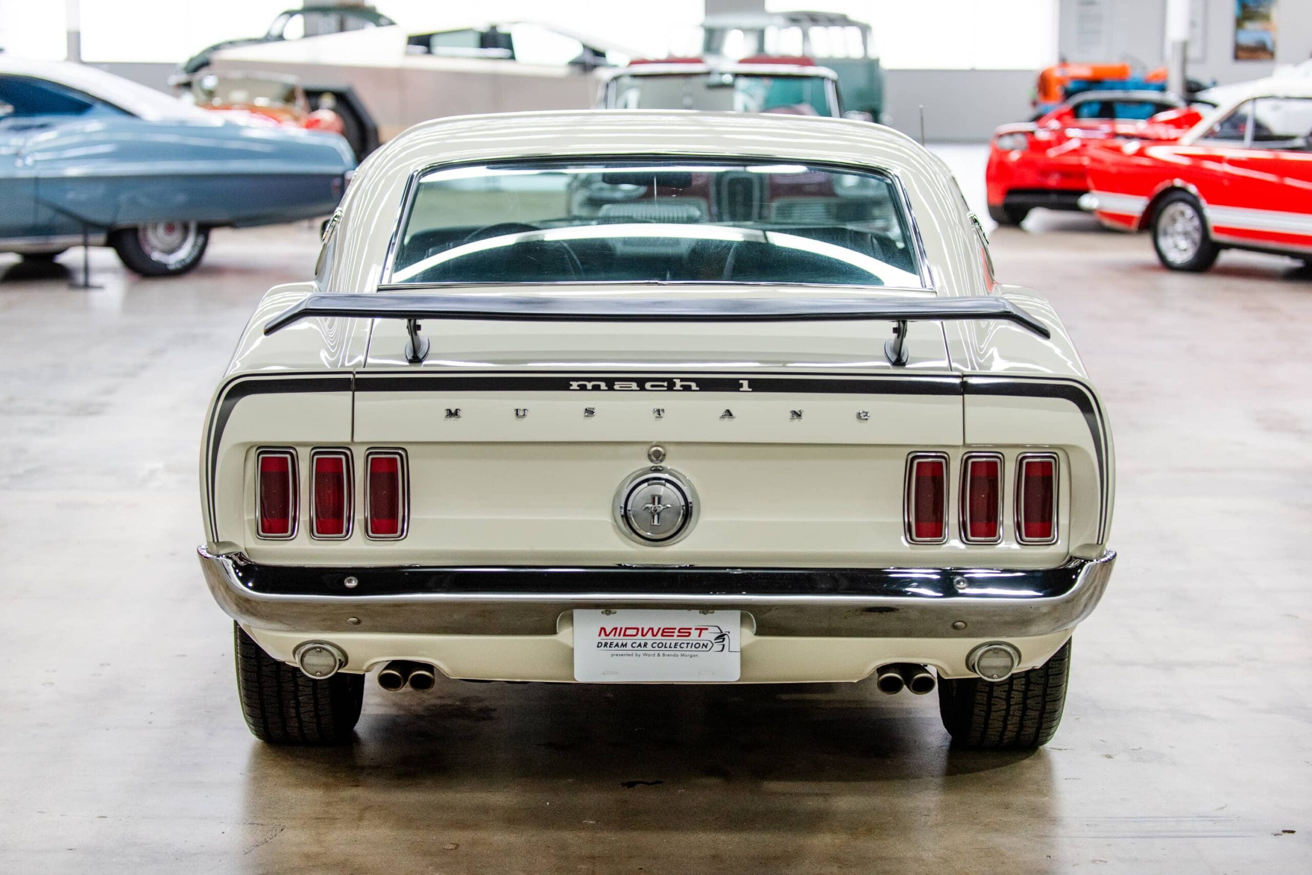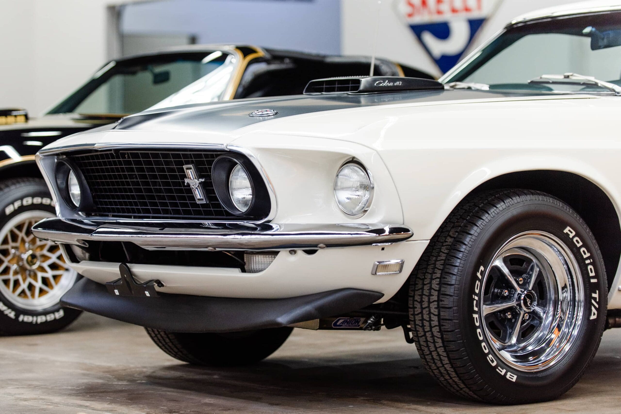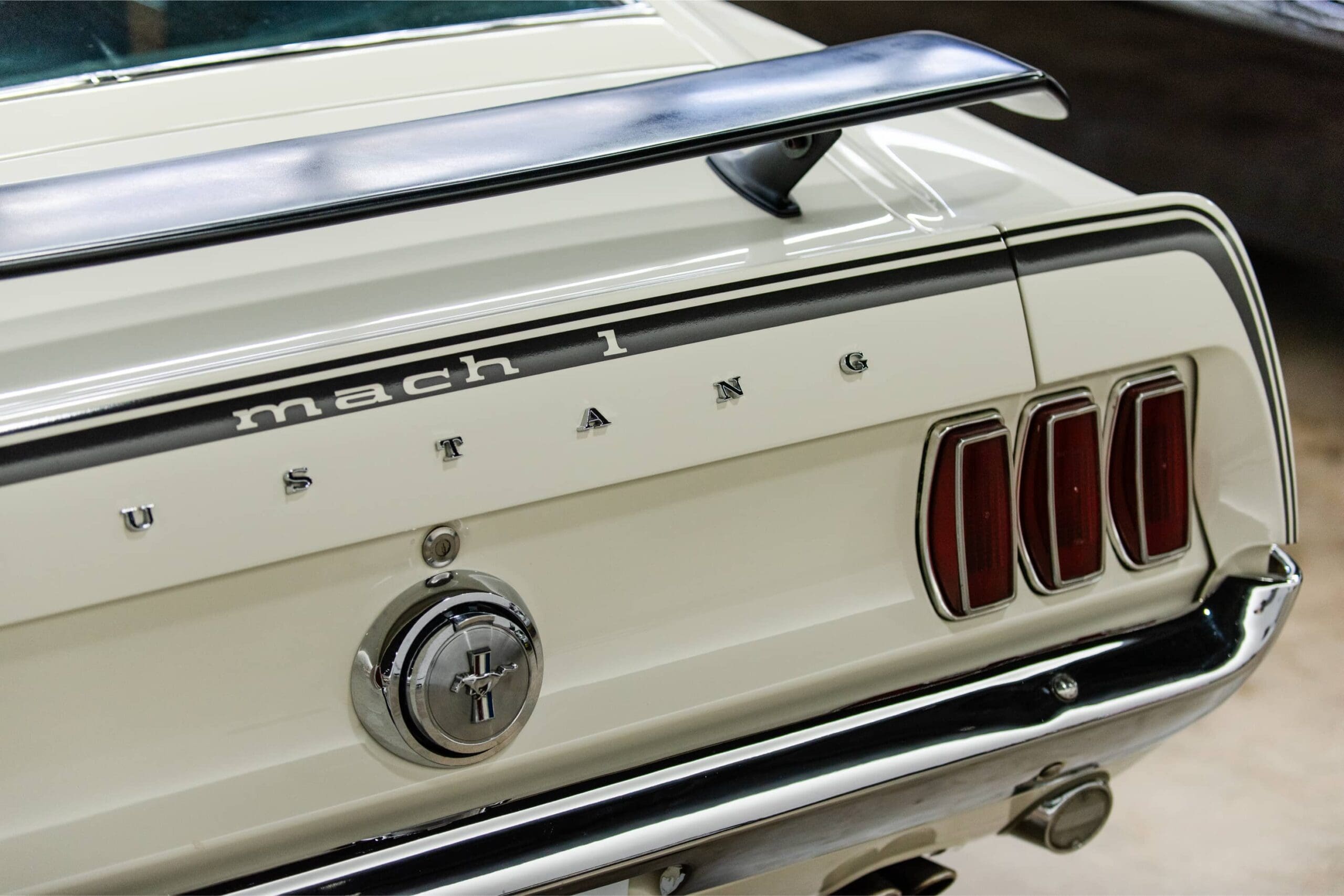 The Mach 1 was created in 1968 and released in the 1969 model year as a performance-oriented option for the Ford Mustang. Along with this new Mach 1, the Cobra Jet FE engine was introduced as a derivation from the famous GT40 engine, which had been dominating at the 24 Hours of Le Mans. This Mach 1 package was designed with a sports-roof body style that is commonly known as a fastback—not to be confused with the hardtop or convertible. The R Code’s name signifies the Ram Air induction.
