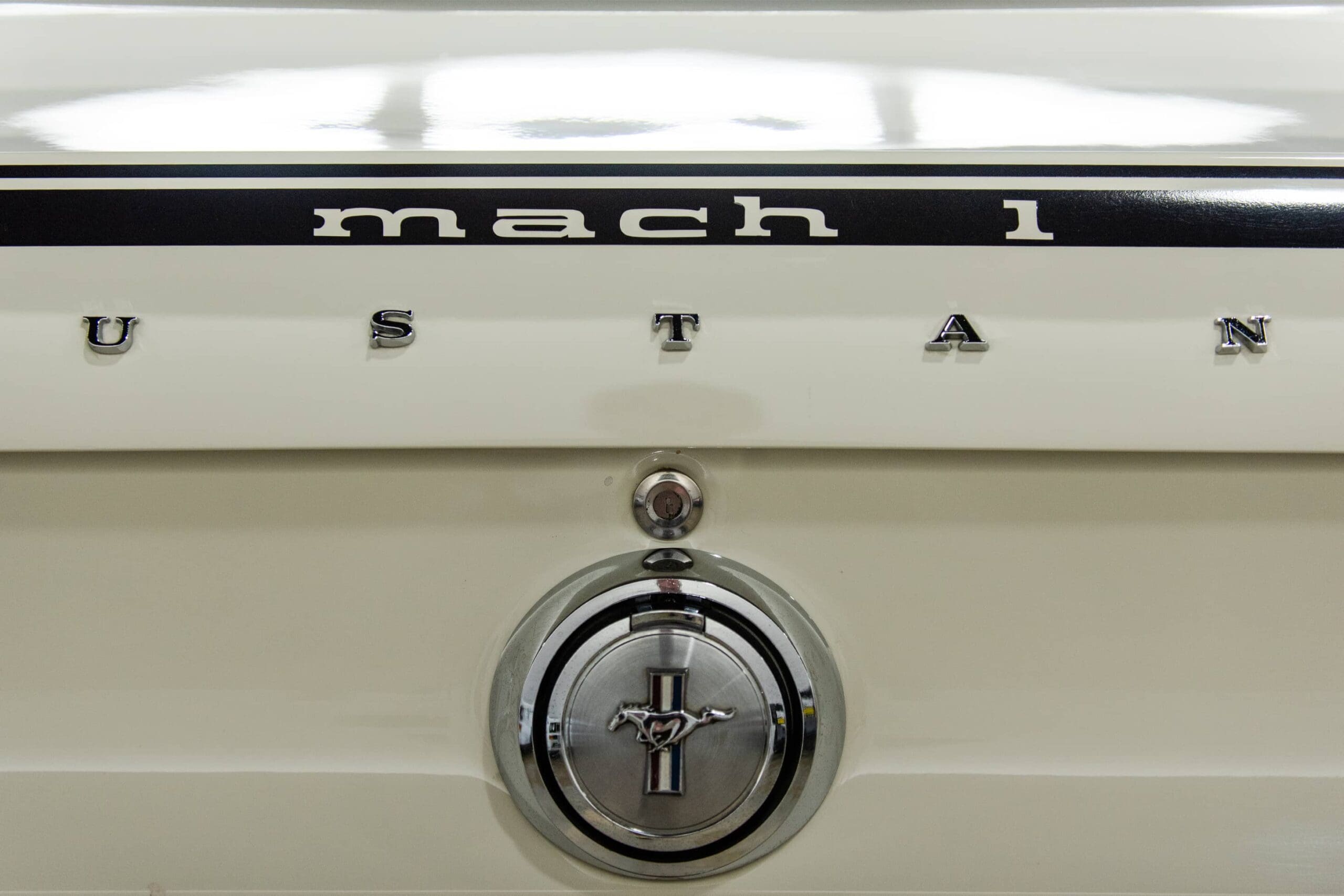 Seeing resto-mod examples that are not original Mach 1s but have been converted by Ford enthusiasts to have the Mach 1 design package is common. However, this Mustang is a true original. Matte black hood treatment, hood pins, hood scoop, shaker, competition suspension, revised Goodyear Polygas tires, chrome exhaust tips, deluxe vinyl interior, rear deck spoiler, chin spoiler, and rear window louvers announce the Mach 1’s presence and set it apart from all other cars and Mustangs on the road. Although this particular Mustang has had its rear-window louvers removed, the car still sports all other Mach 1 features.