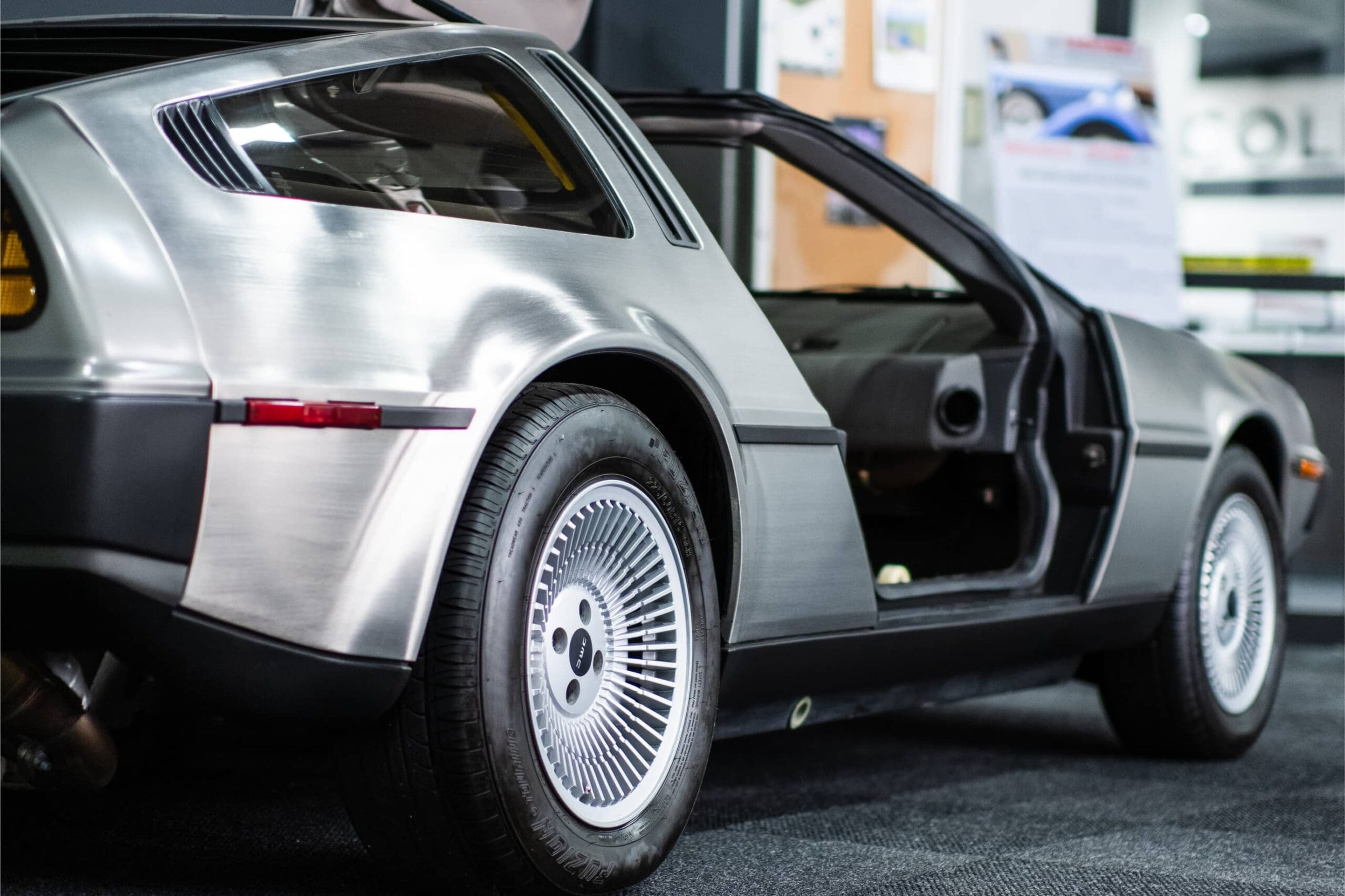 The DMC-12’s gullwing doors might be its most distinctive feature. On problem in building them was the windows: a shorter door wall meant that only half-window portions could be retractable, much like the Lamborghini Countach of the same period.