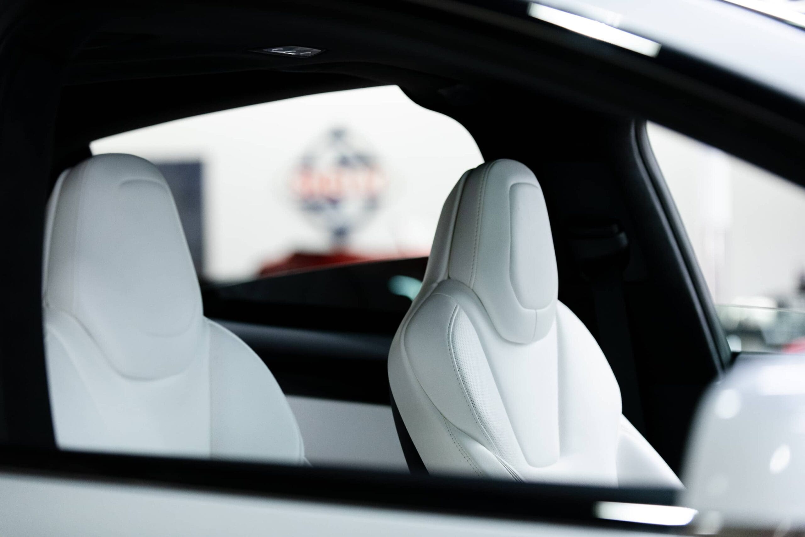 The Tesla Model X at the Midwest Dream Car Collection is the top-of-the-line P100D performance edition finished in additional cost silver paint. It is equipped with the optional six seat interior with center console in an eye catching premium white leather. Additional optional equipment include: enhanced auto pilot, full self-driving capability and 22” onyx black wheels. These additional options add an additional $20,500 to the already hefty $140,000 P100D base price. Standard features included on the P100D model are ludicrous speed upgrade, battery range upgrade, dark ash wood décor, tow package, ultra-high fidelity sound package, smart air suspension, third row seats, red brake calipers and high amperage charger upgrade. All of this combined with an exhilarating 2.7 second 0-60 speed make this one fun SUV!