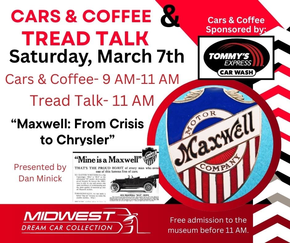 FeaturedMidwest Dream Car Collection 3007 Anderson Avenue, Manhattan, KS, United StatesMaxwell: From Crisis to ChryslerPresented by Dan Minick Before Chrysler became a household name, there was Maxwell. In the early 1920s, the Maxwell Motor Company was struggling to survive—until Walter P. Chrysler stepped in with a bold vision for the future. Join us for this engaging Tread Talk as Dan Minick explores how Chrysler transformed […]